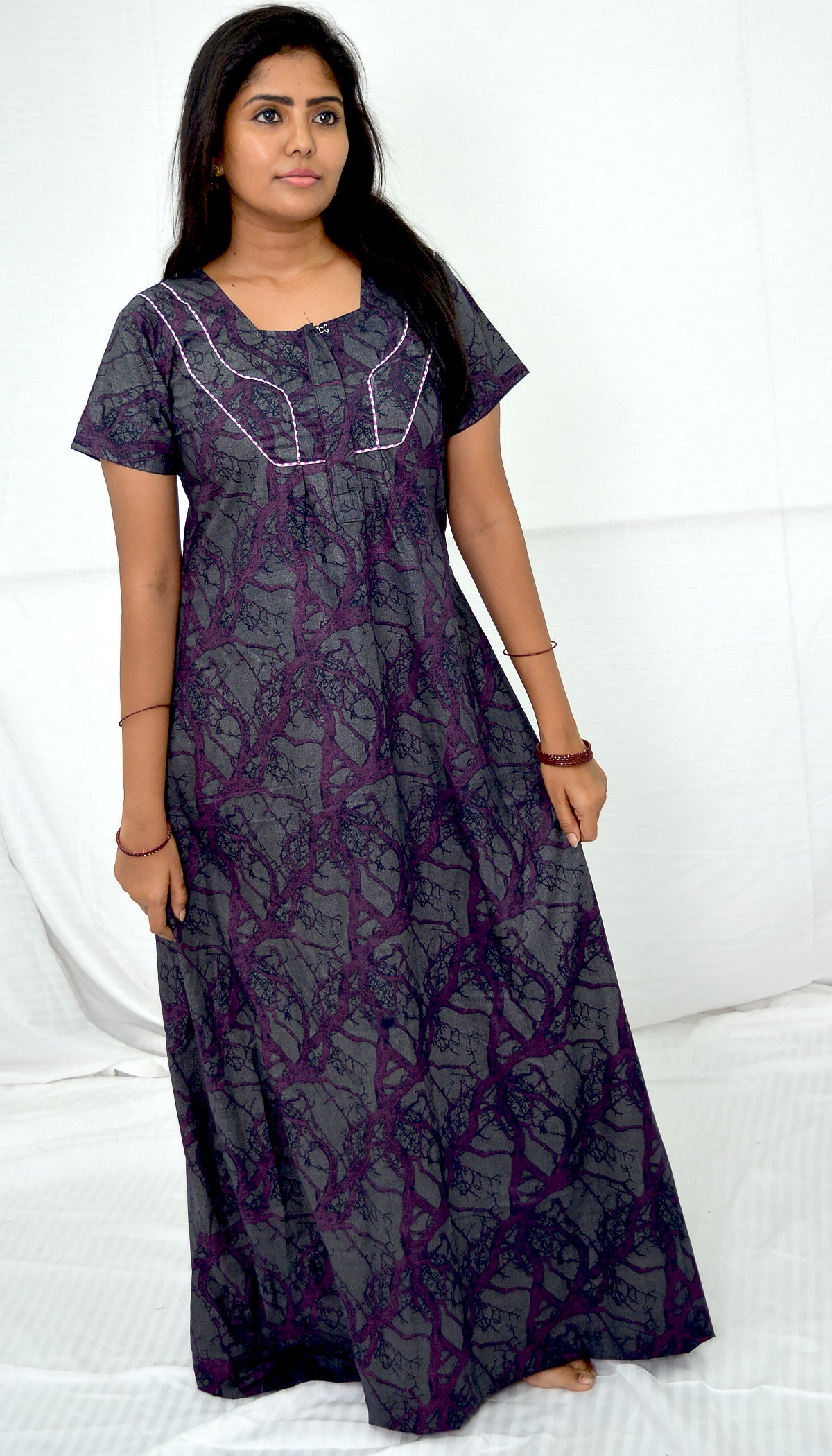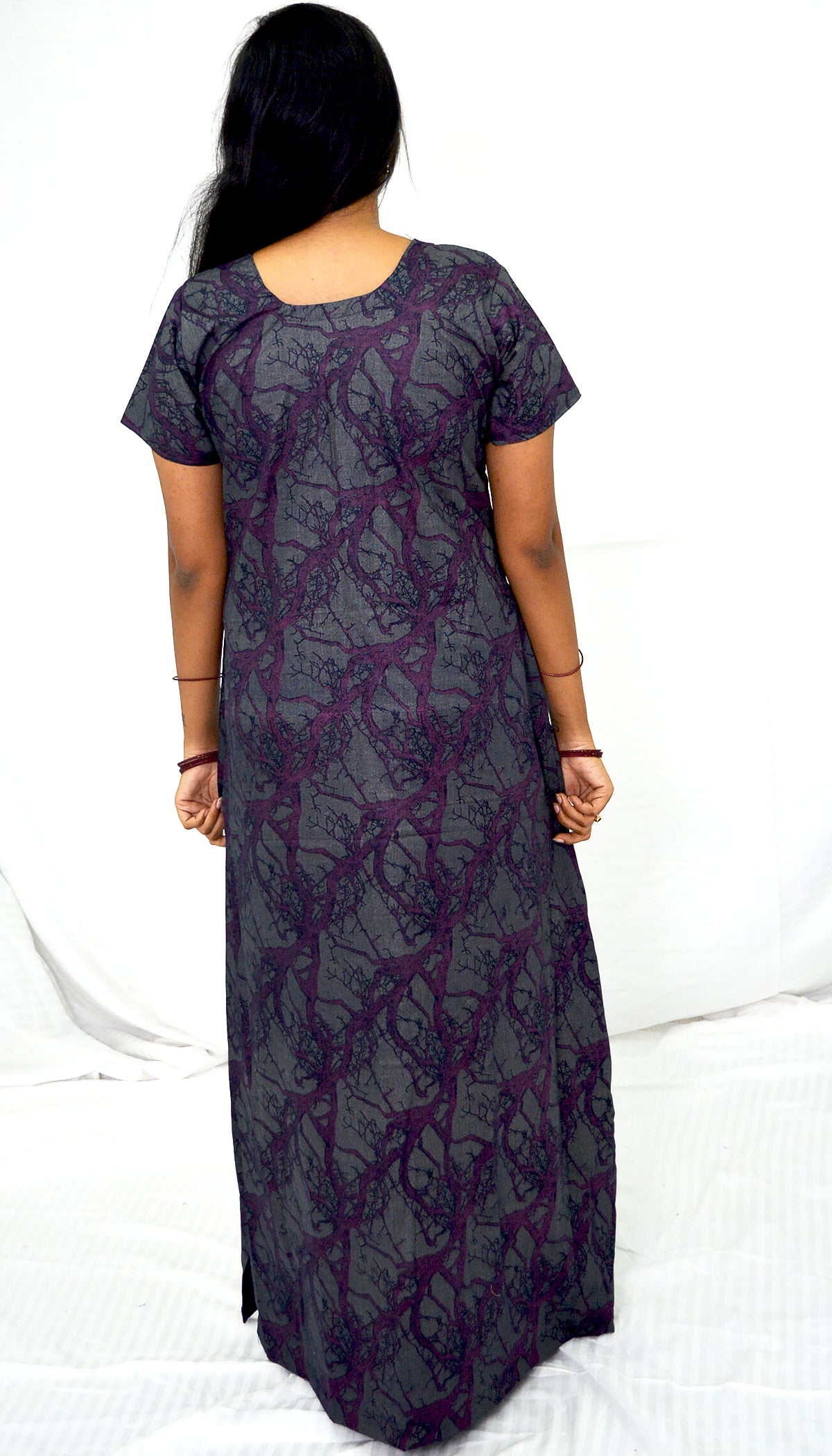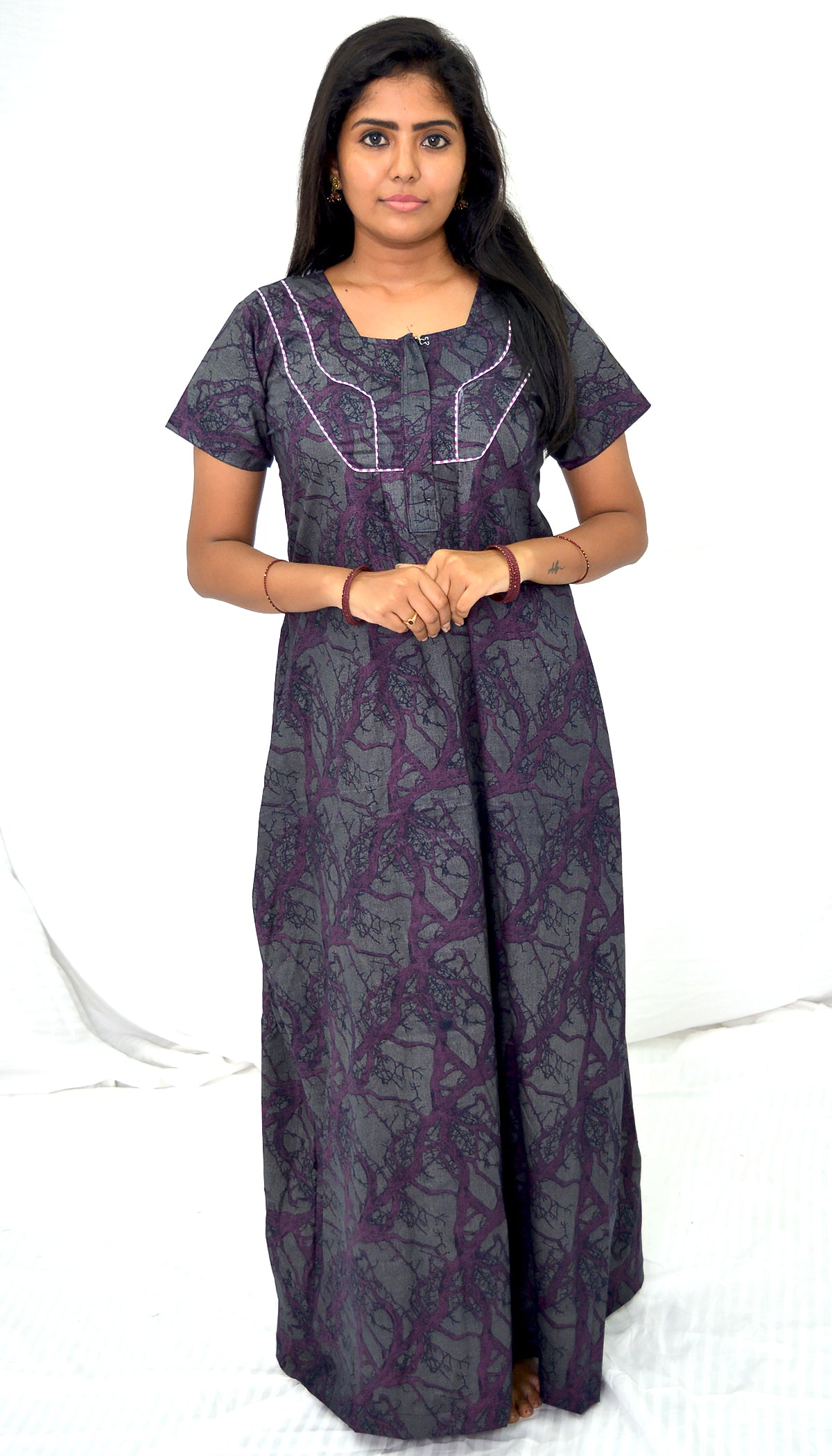 DARK GREK DARK violet cotton Nighties, The natural design of the gorgeous floral print give yourself the look. 100% Cotton Material Closure type - Front Zip Soft and comfortable Printed