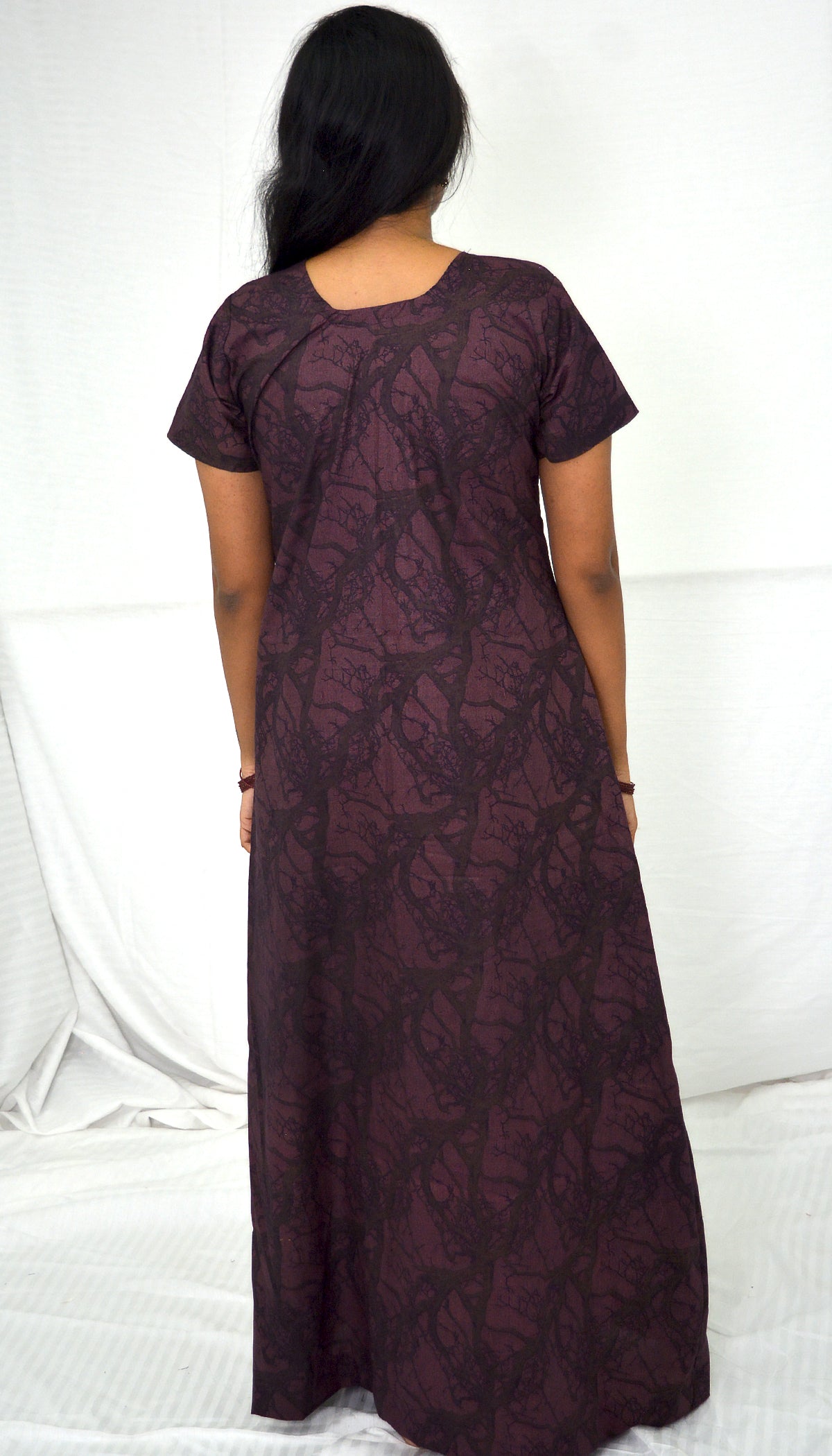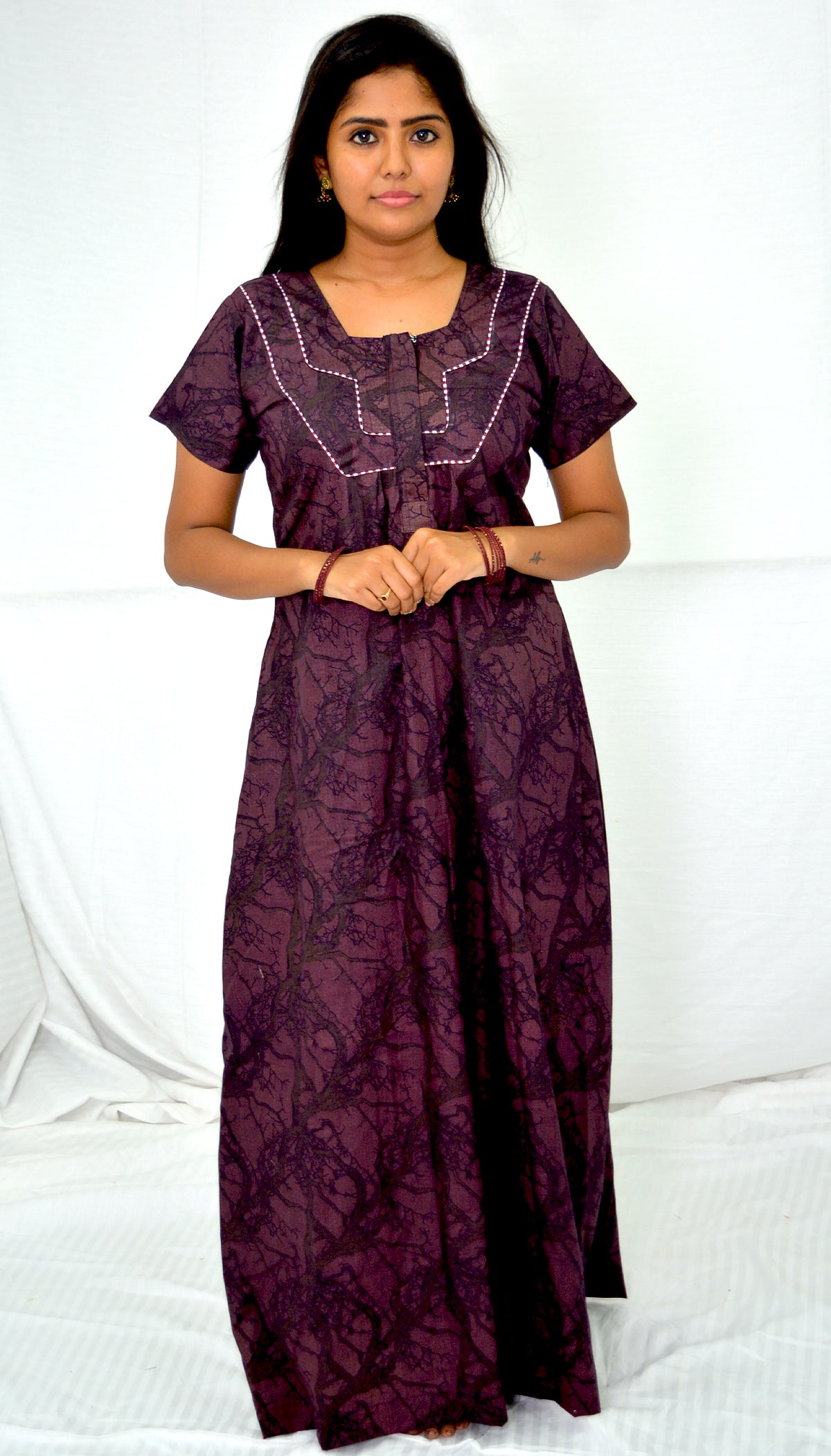 mahogany cotton Nighties, The natural design of the gorgeous floral print give yourself the look. 100% Cotton Material Closure type - Front Zip Soft and comfortable Printed