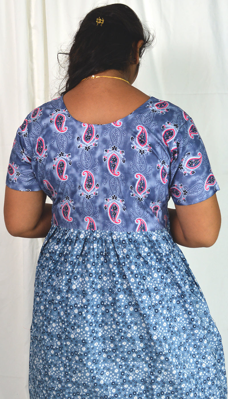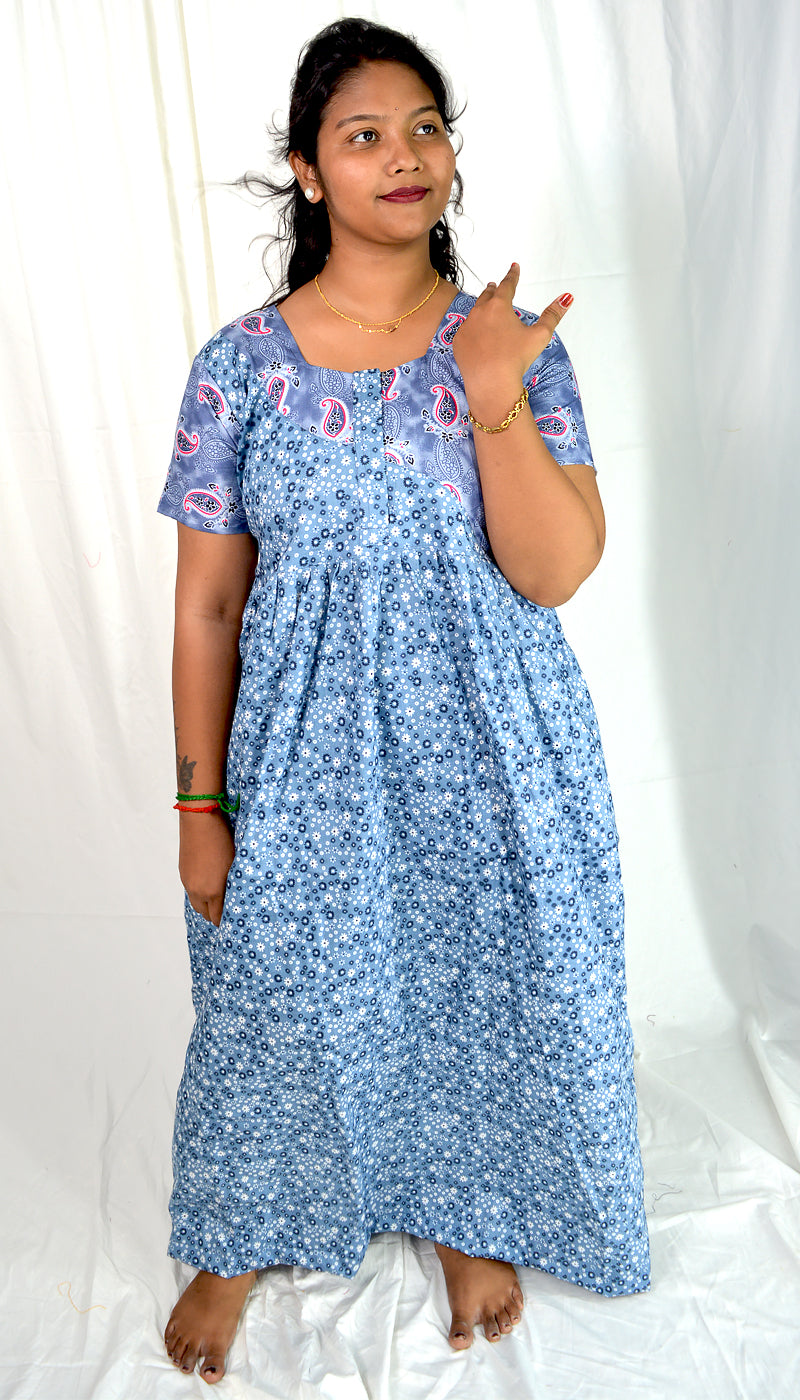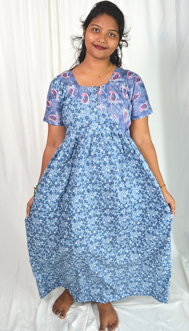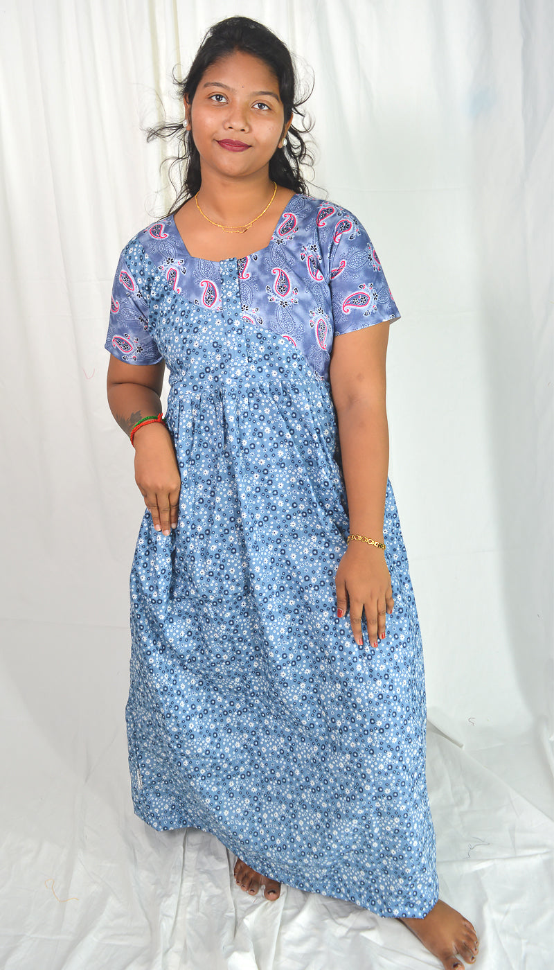gray blue -Frock-Style Nighty, Experience comfort with elegance in this stylish frock-model nighty. Designed in a graceful black and blue color combination, this nightwear features soft, breathable fabric perfect for daily use.
