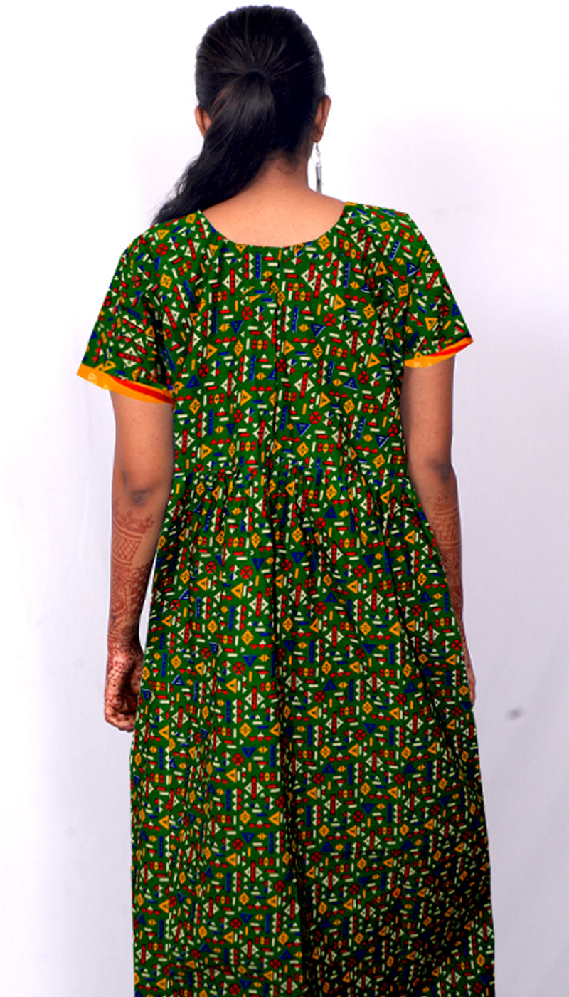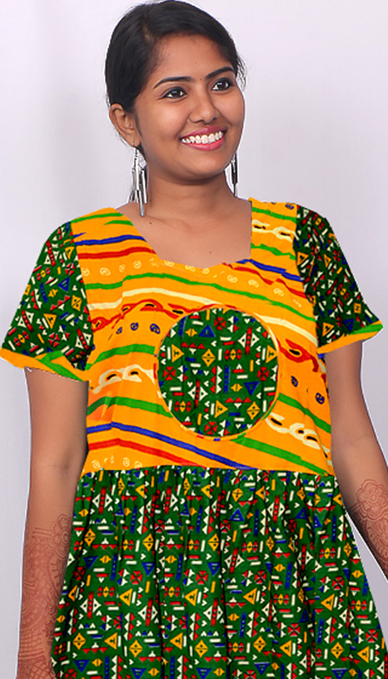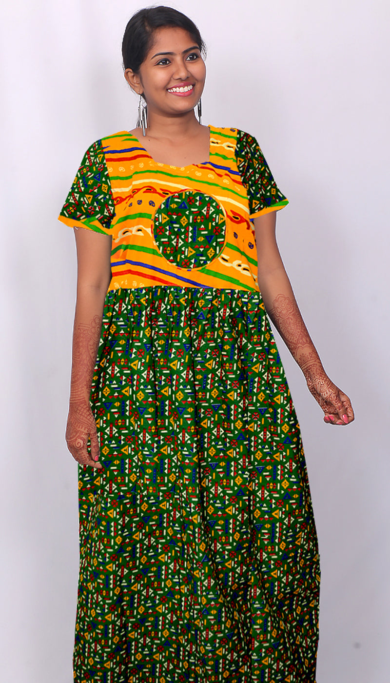 YELLOW and GREEN Frock-Style Nighty, Experience comfort with elegance in this stylish frock-model nighty. , this nightwear features soft, breathable fabric perfect for daily use.