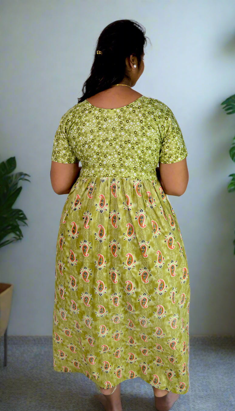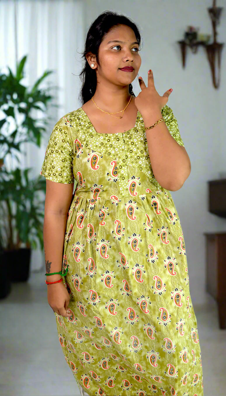 Green Frock-Style Nighty, Experience comfort with elegance in this stylish frock-model nighty. Designed in a graceful black and blue color combination, this nightwear features soft, breathable fabric perfect for daily use.