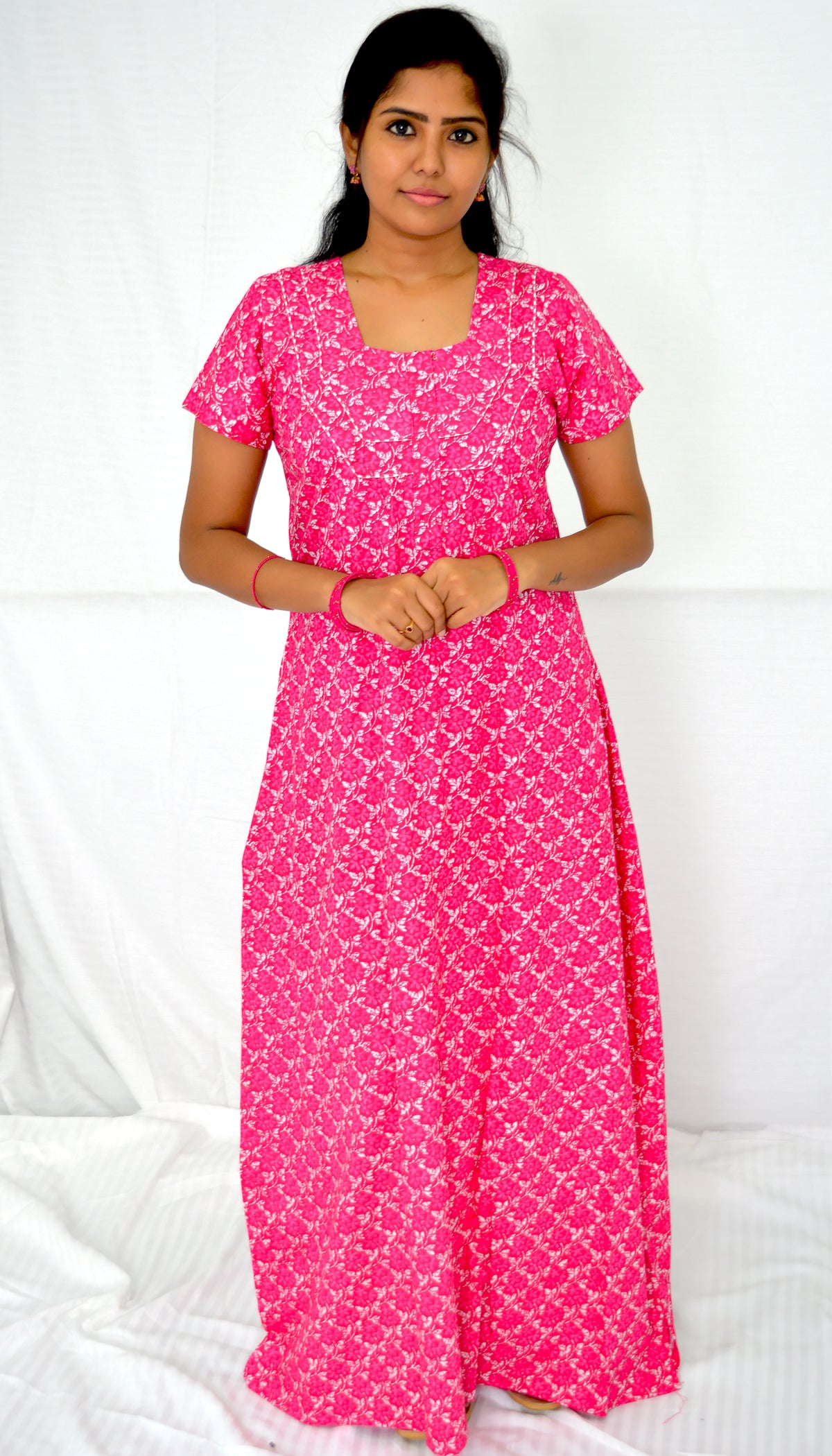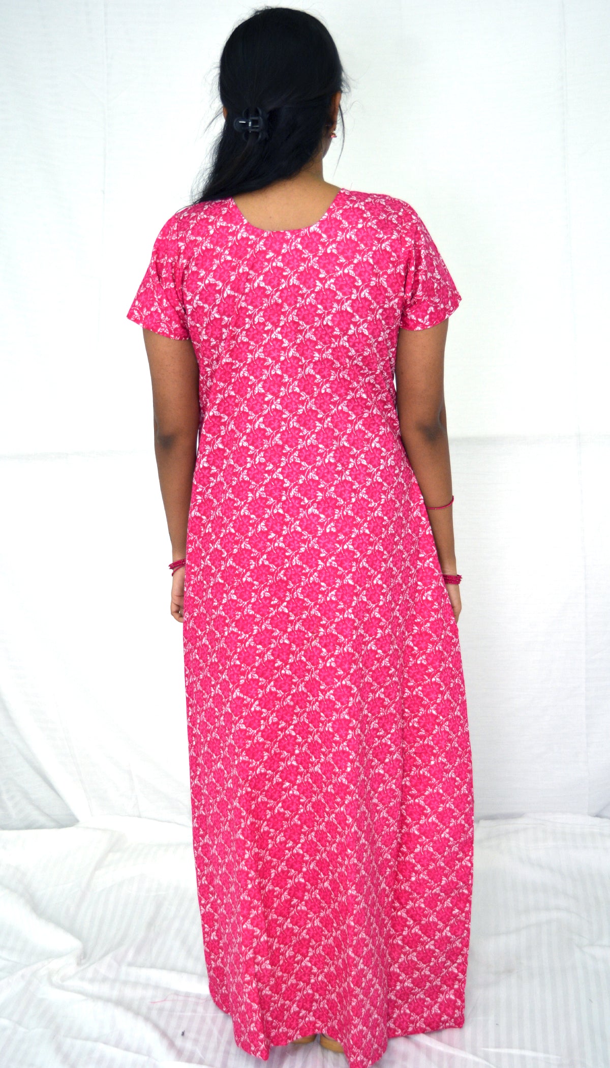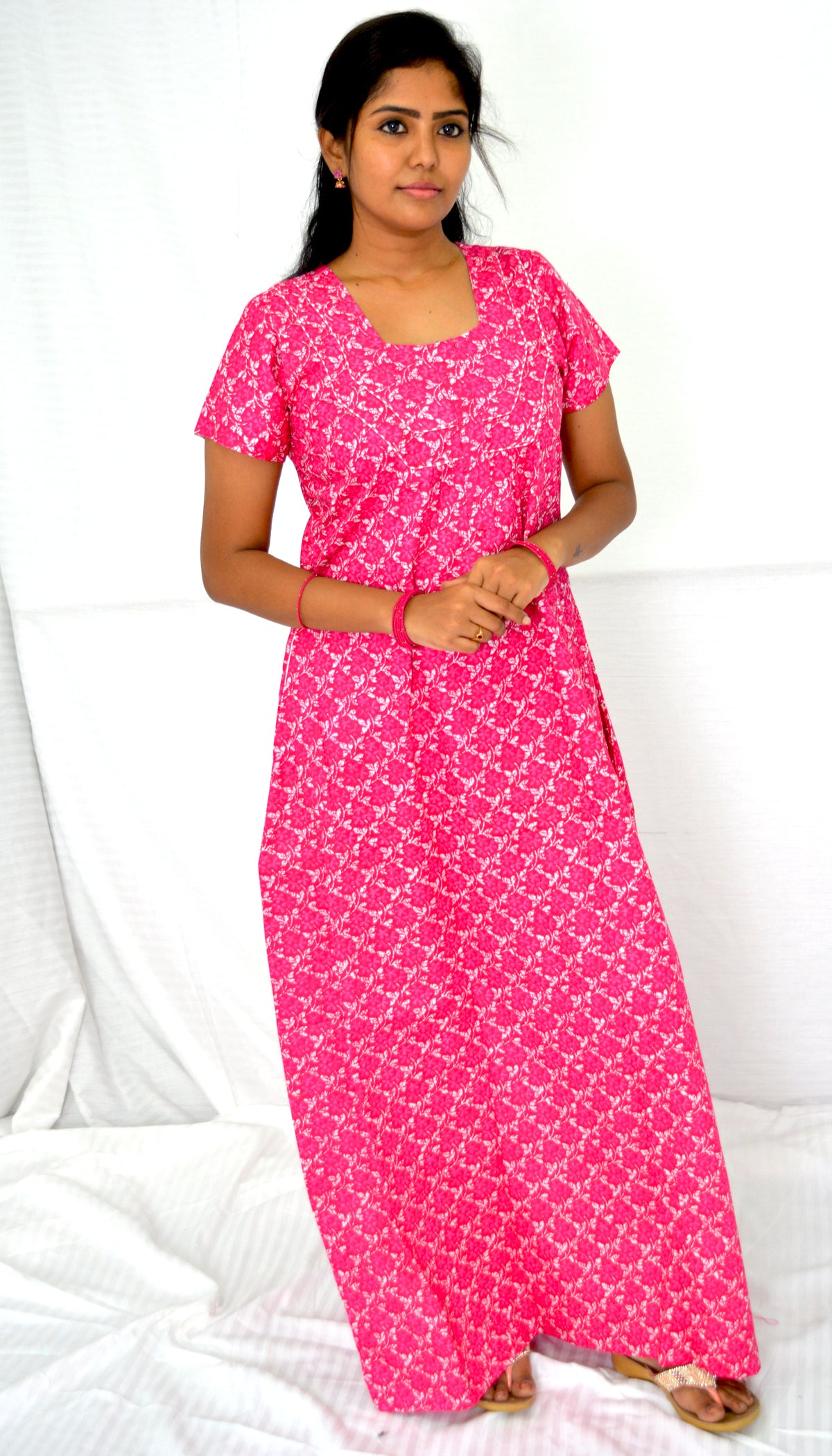 Cotton LIGHT ROSE Floral Nighties, The natural design of the gorgeous floral print give yourself the look. 100% Cotton Material Closure type - Front Zip Soft and comfortable Printed