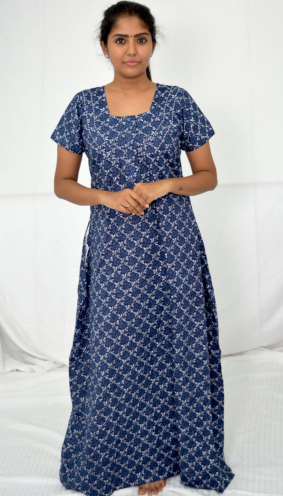 Prussian blue COTTON Floral Nighties
